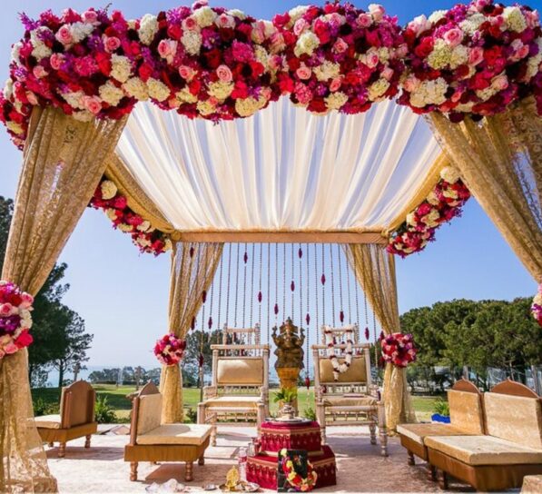 Elegant mandap and stage decoration designed to enhance your wedding rituals and create a stunning visual experience.